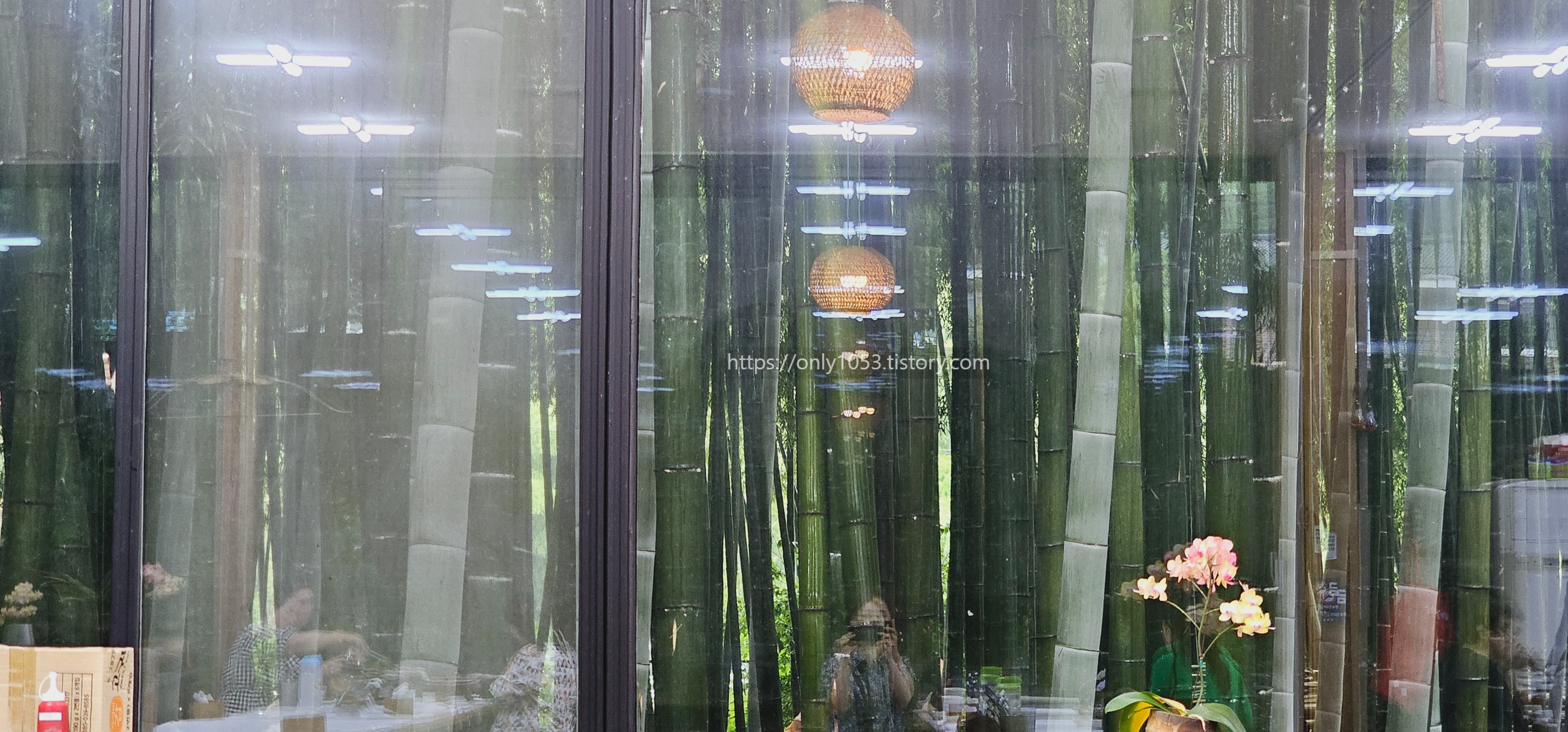식당 실내로 들어가면 양쪽 통유리로 대나무가 정말 빽빽하게 채워 저 있어요.