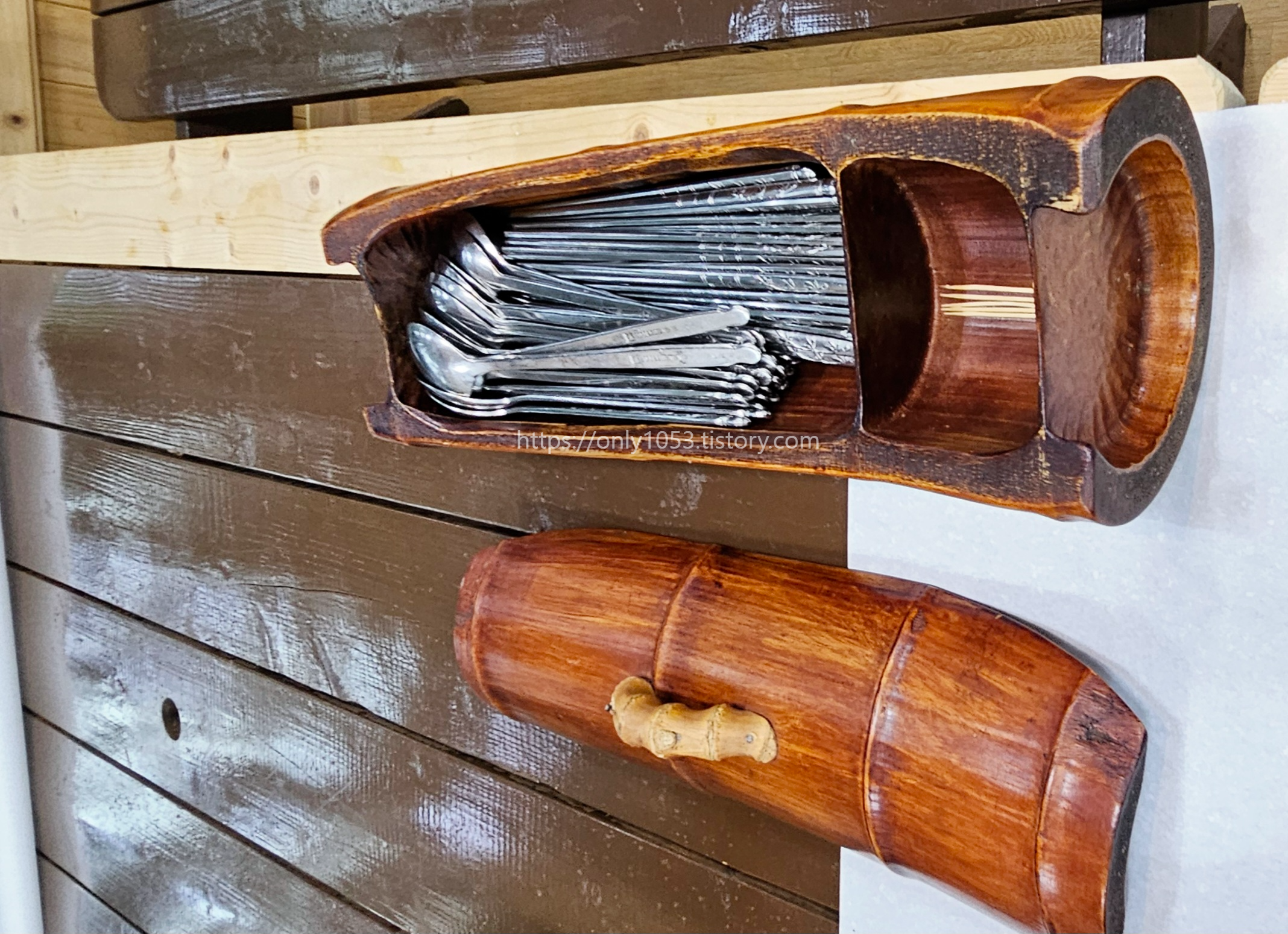 식탁 위 모든 것이 대나무로 만들어져 있어서 신기했어요.