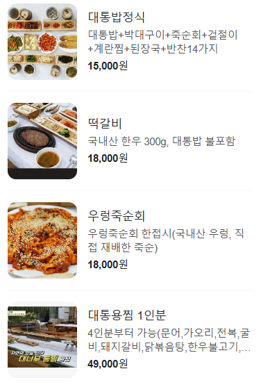 대통용찜은 1일전 예약을 해야하고, 일부 선입금 해야합니다.